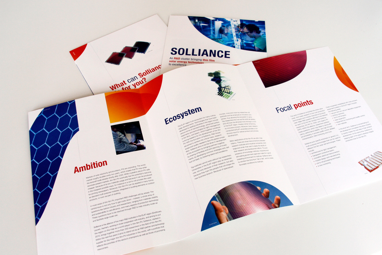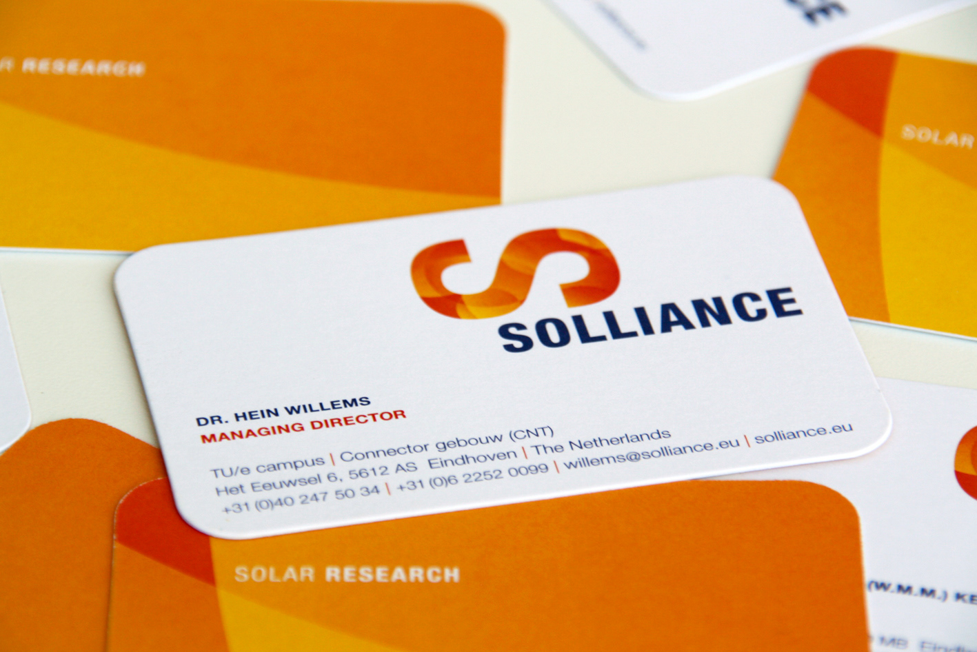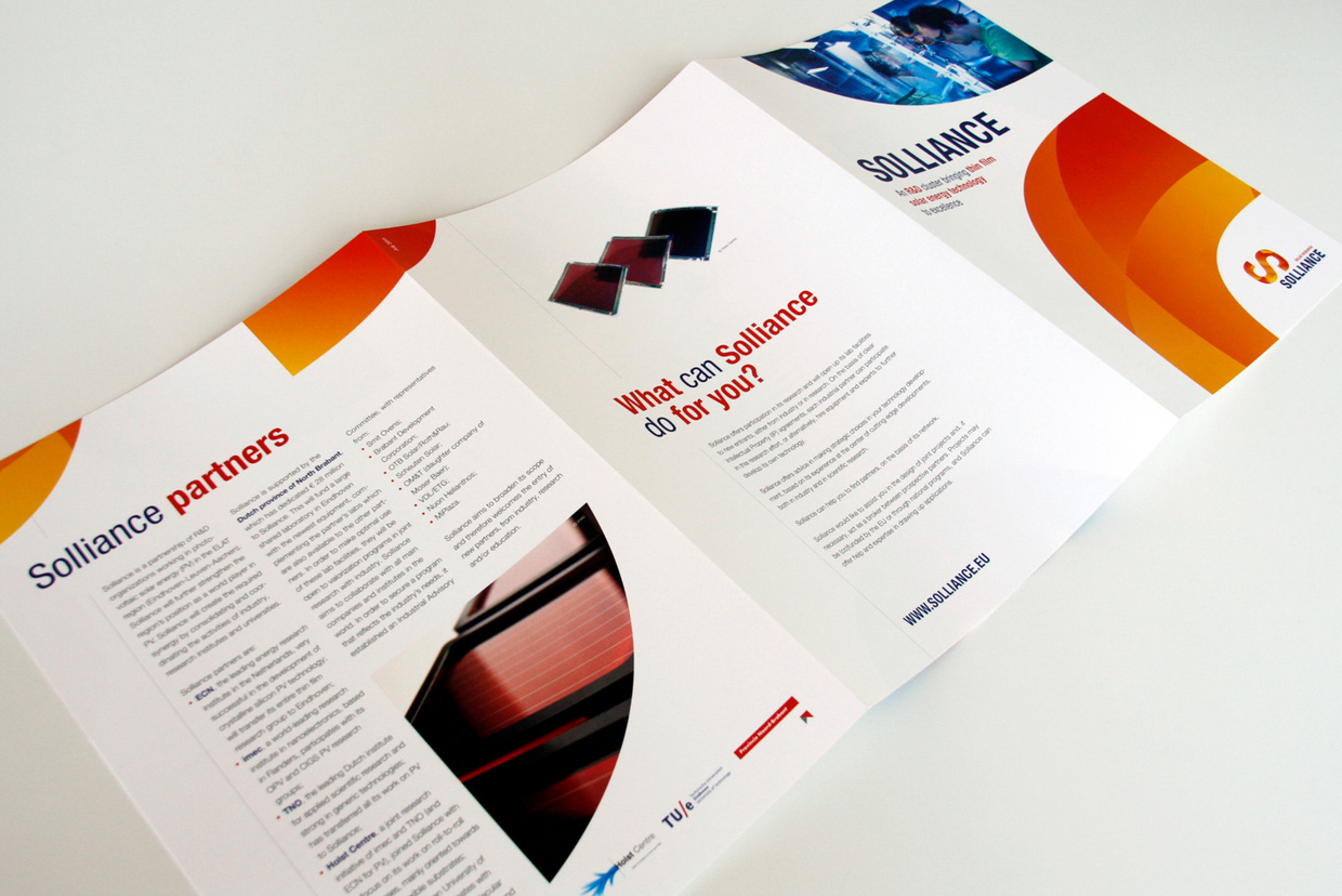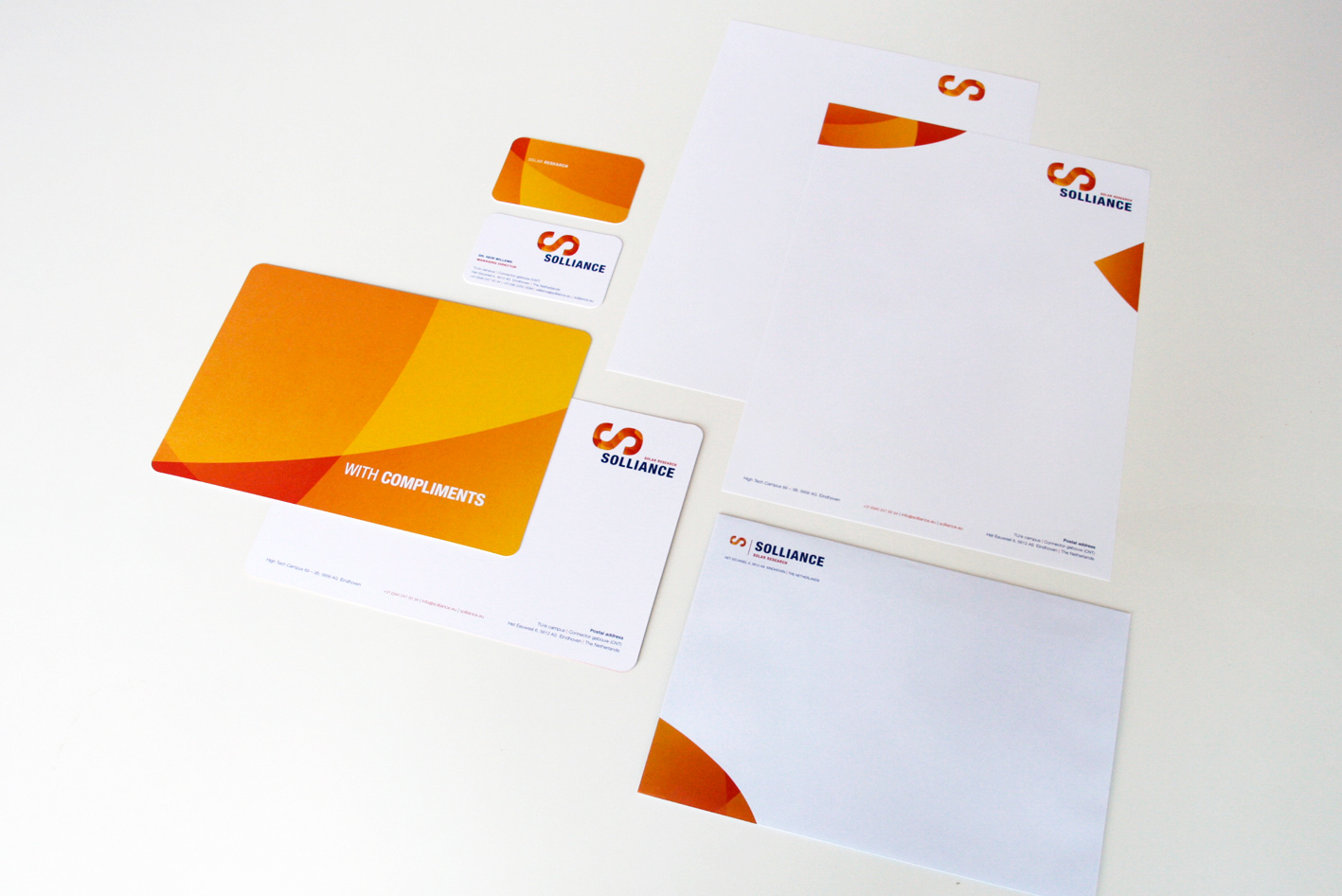 I designed this corporate identity for Solliance on behalf of Oranje Vormgevers, my former employer. Solliance is is a cooporation between ECN, TNO, Holst Centre, TU/e and Imec. The aim is to be a 'world player' concerning solar energy.